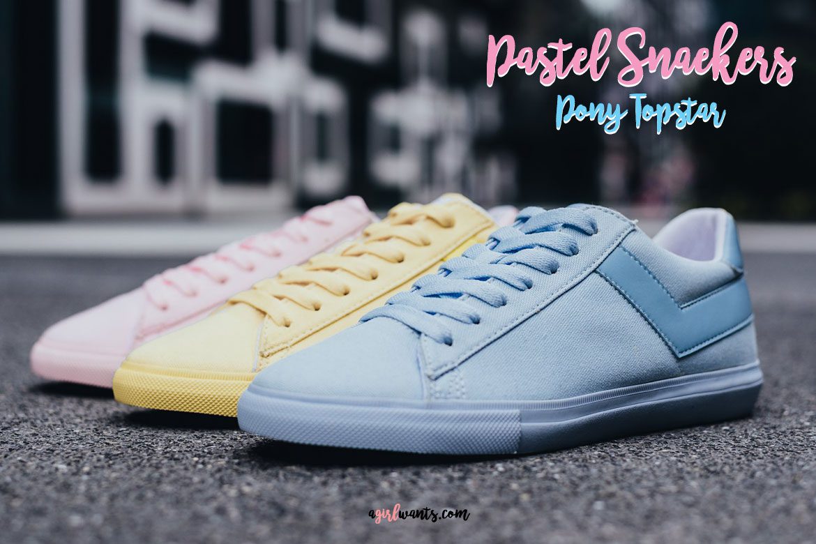 แค่เห็นก็ใจสั่นแล้วค่ะซิส รองเท้าผ้าใบสีพาสเทลน่ารักๆ แต่แอบแฝงไปด้วยความมินิมอลเก๋ๆ ดูดี PONY Topstar นางมา 3 เฉดสีชิคๆ ป๊อปๆ สีชมพู เหลือง ฟ้า ครอบคลุมทุกความพาสเทล เห็นแล้วกิเลสสั่นรัวๆ