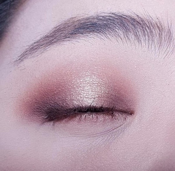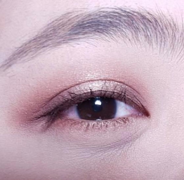1. ทาอายแชโดว์สีน้ำตาลอ่อนที่หัวตากับหางตา เว้นช่วงกลางเปลือกตาเอาไว้