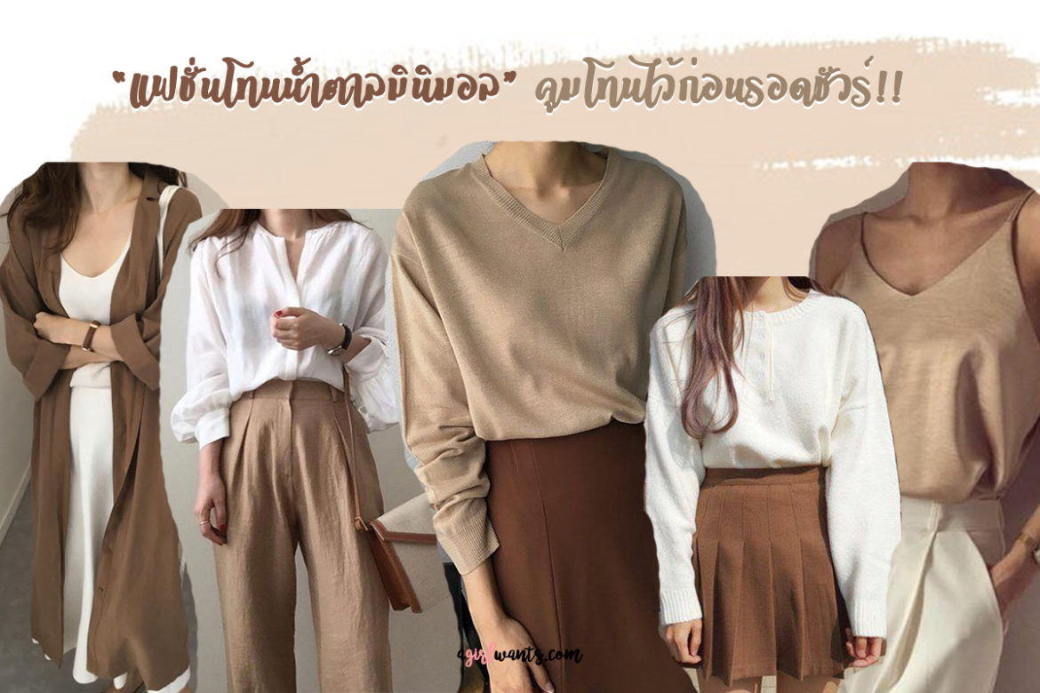 สำหรับสาวๆ ที่อยากได้ลุคแต่งตัวเรียบเก๋ดูดี ลองเลือกคุมโทนเสื้อผ้าให้เป็นสีน้ำตาลนู้ดๆ มีความมินิมอลชิคๆ ไม่เยอะเกินไป แต่งเป็นลุคสุภาพไปทำงานได้ด้วย ถ่ายรูปคุมโทนลงไอจีก็สวยนะจะบอกให้