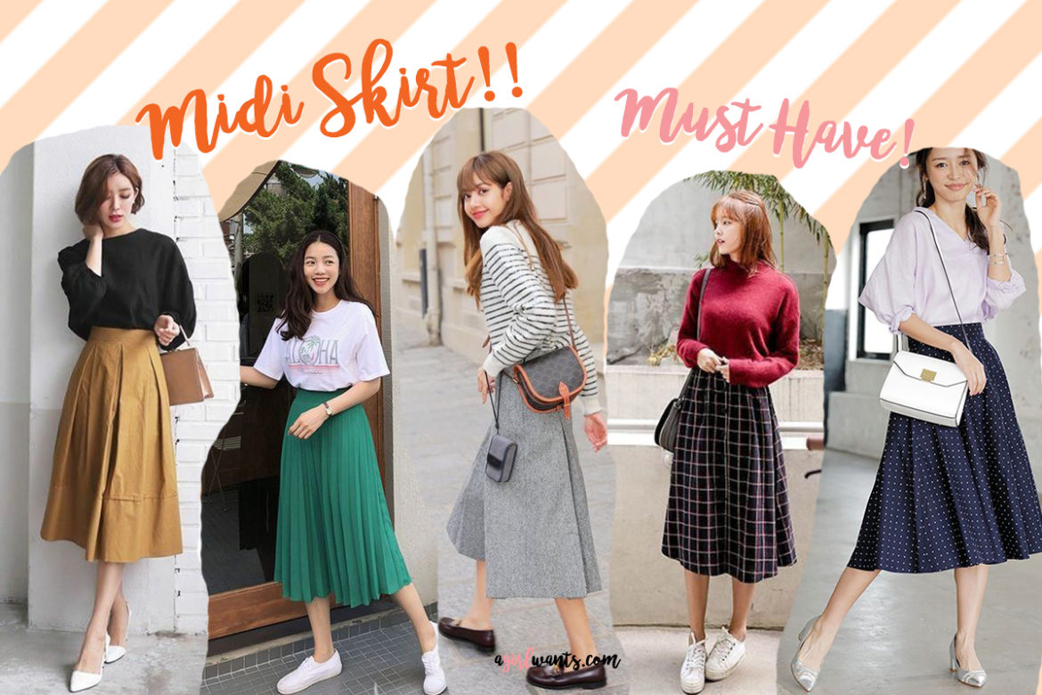 แฟชั่นกระโปรงยาวกำลังมาแรง โดยเฉพาะทรงบานนิดๆ ยาวเลยเข่าลงมา ไม่จำเป็นต้องยาวลากพื้นแบบแม็กซี่ แต่ขอแค่ยาวกลางแบบ Midi Skirt ก็เริ่ดแล้วค่ะ!!